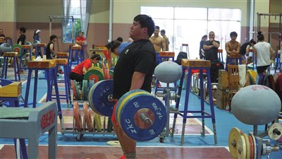 - 运动员在五指山国家体育训练南方基地举重馆冬训。(记者余育桑 摄)