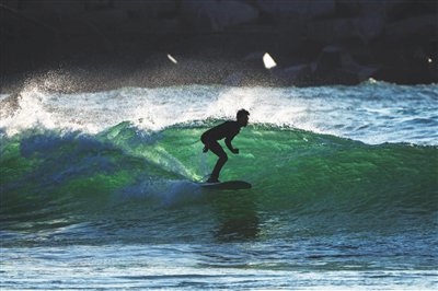 - 运动员在陵水香水湾冲浪。(记者刘孙谋 摄)